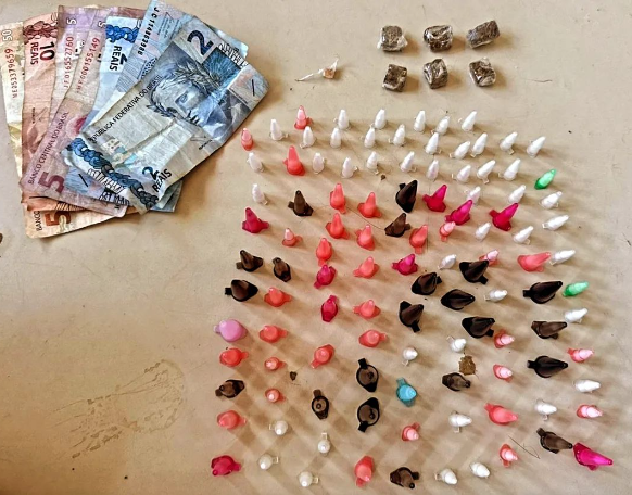 Durante a abordagem, foram encontradas 111 porções pequenas de cocaína, 06 porções pequenas de maconha, 01 porção pequena de crack e a quantia de R$ 76,00 em posse do indivíduo. Diante do flagrante, o homem foi encaminhado para adoção das medidas legais e deverá responder pelo crime de tráfico de entorpecentes.
