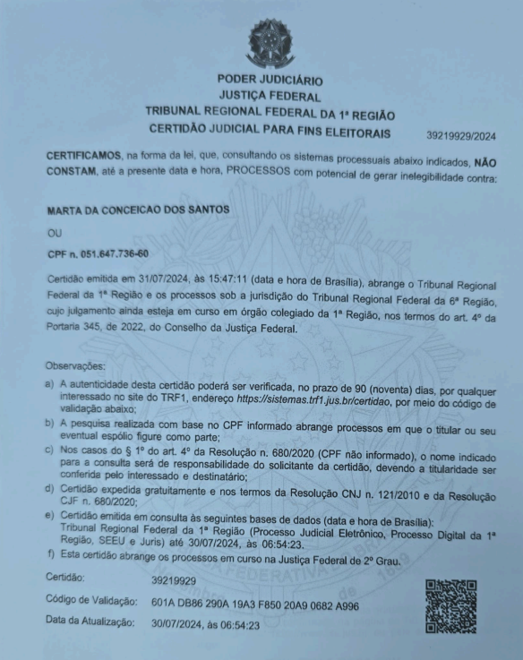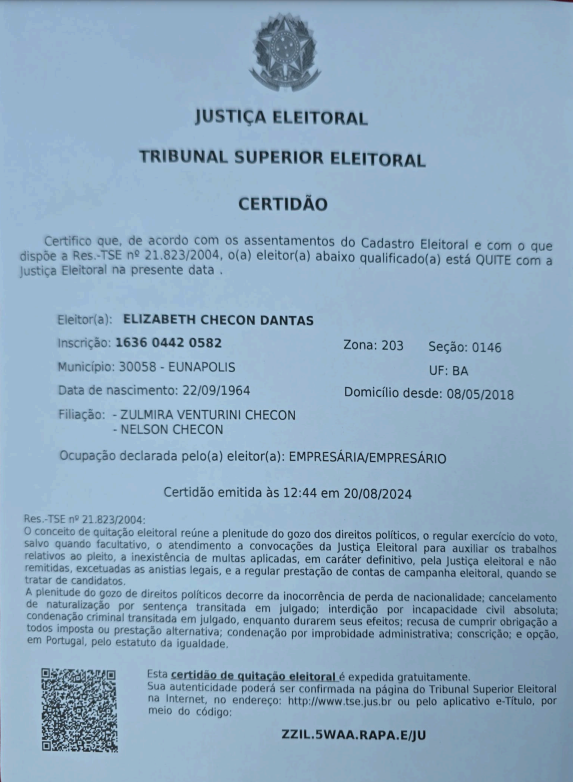 Por sua vez, a candidata a vice-prefeita, Bel Checon, reforçou o compromisso da chapa com a transparência e a lisura do processo eleitoral. “Estamos apresentando a certidão, não estamos ideferidas nesta campanha. Aqui tem honestidade, estamos sim autorizadas a fazermos nossa campanha”, declarou Bel.