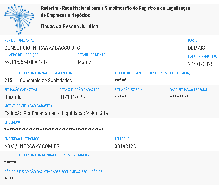 O questionamento ganha força com a recente baixa do CNPJ da Infraway Participações Ltda. (CNPJ: 59.115.554/0001-87), ou seja, seu CNPJ foi oficialmente encerrado e cancelado pela Receita Federal, o que significa que a pessoa jurídica foi extinta e não pode mais exercer atividades comerciais ou fiscais, e segundo documentos anteriores, a Infraway fazia parte do consórcio envolvido na modelagem e no andamento do projeto. A baixa do registro fiscal de uma das partes importantes do processo é vista pelo mercado como um forte indicativo de que o projeto da PPP está estagnado ou descontinuado.