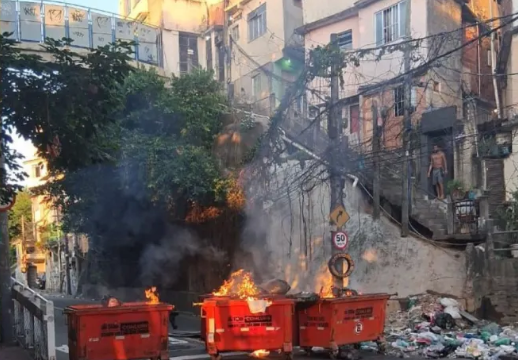 criminosos incendiaram lixeiras para criar barreiras físicas contra a polícia. – Reprodução