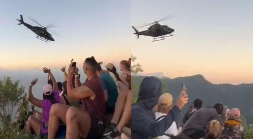 Vídeo feito por turista mostra pessoas acenando para um helicóptero da polícia. – Reprodução
