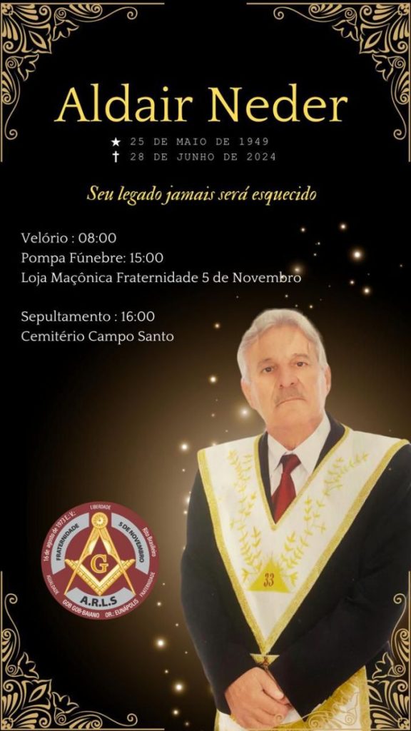 A Maçonaria, Eunápolis e a região da Costa do Descobrimento estão de luto! Faleceu nesta sexta-feira, 28, aos 75 anos, o médico bioquímico e grande maçom Aldair Neder, um ícone nos serviços de saúde em Eunápolis e na região.