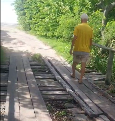 A pequena ponte, única ligação do bairro com outras regiões, já apresenta sinais de deterioração há tempos, mas a situação se agravou com as últimas chuvas. Um vídeo enviado à nossa redação, gravado por moradores, mostra madeiras rachadas, apoios enfraquecidos e o temor de que a estrutura não resista ao uso contínuo.