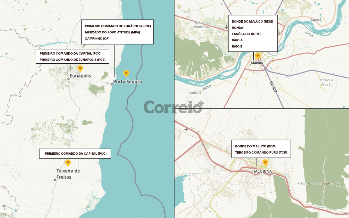 No estado, o PCC mantém sua atuação nas unidades prisionais de Salvador, Feira de Santana, Itabuna, Teixeira de Freitas e Eunápolis. “As decisões importantes da facção, na maioria das vezes, sai de dentro dos presídios, onde estão algumas lideranças”, informa um agente do Departamento Especializado de Investigações Criminais (DEIC).