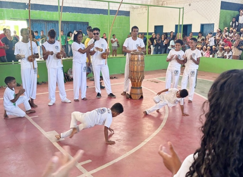 Mais de 150 alunos da Escola Padre José de Anchieta participaram das atividades, que incluíram apresentações culturais do grupo de capoeira e da banda marcial, além de diversos serviços de saúde e cidadania.