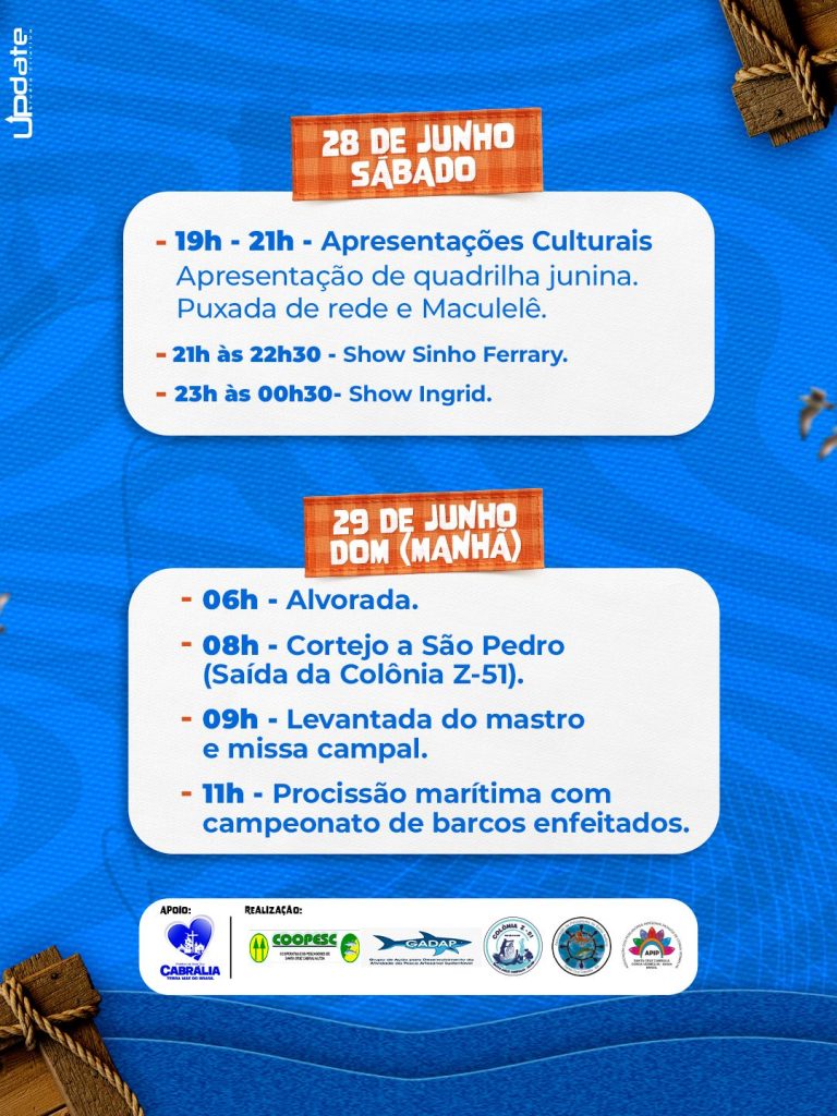 Início » Tradicional Festa dos Pescadores agitará Cabrália com shows e programação intensa nos dias 28 e 29 de junho