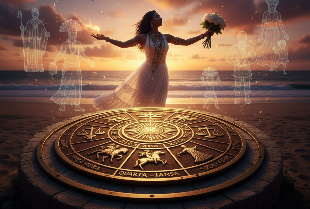 Ao entender a roda do tempo sagrado, você não só honra as tradições afro-brasileiras, mas também encontra um guia diário para direcionar suas intenções e energias, vivendo em maior harmonia com o plano espiritual.