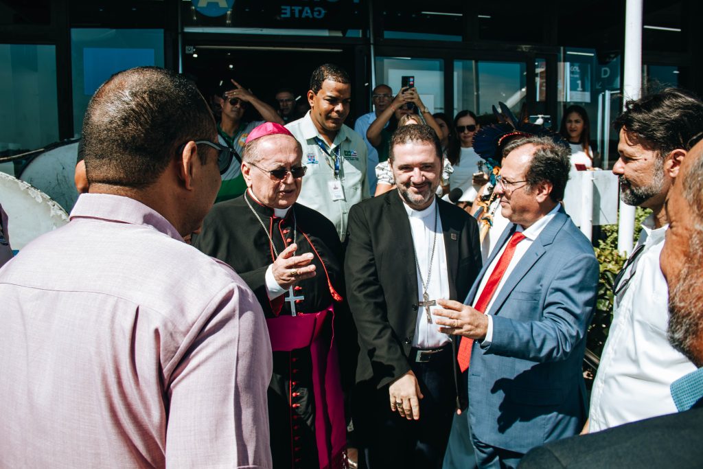 Estiveram presentes na cerimônia o vice-prefeito de Porto Seguro Paulinho Tôa Tôa, o secretário de Turismo do Estado da Bahia, Maurício Bacelar, o padre Omar, reitor do Santuário do Cristo Redentor, e Dom Dirceu, presidente do Regional Nordeste 3 da CNBB (Bahia e Sergipe).