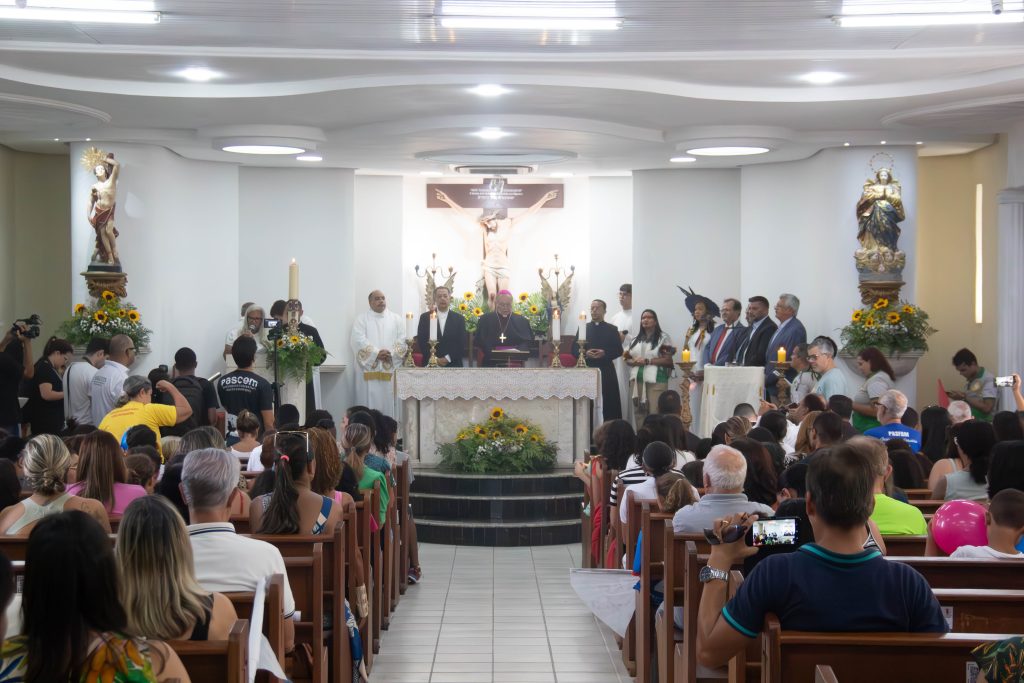 A programação deste dia histórico seguiu com a Missa Pontifical, celebrada às 16h na Praça do Cruzeiro, presidida por altas autoridades eclesiásticas. A celebração contou ainda com apresentações musicais, destacando-se o show da banda Colo de Deus, que animou os presentes com canções de fé e devoção.