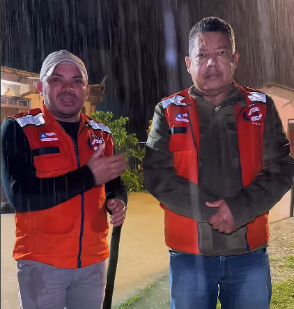Girlei Lage e o Comandante da defesa Civil de S. Cruz Cabrália, Comandante Valdemar. “Agora é hora de cuidar de vidas, não de preparar palcos.”