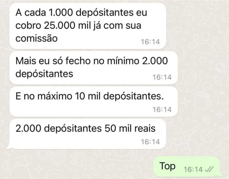 Ainda, em um dos vídeos, ao longo de 25 minutos, a mensagem “muito boa essa plataforma” apareceu 80 vezes, publicada por 22 contas diferentes. Em outra live, o mesmo comentário apareceu 49 vezes, postado por 19 perfis diferentes em um intervalo de 13 minutos.