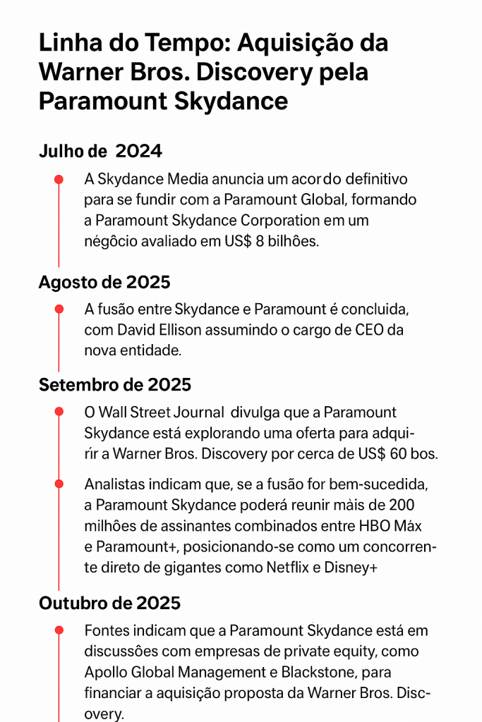 Linha do Tempo: Aquisição da Warner Bros. Discovery pela Paramount Skydance